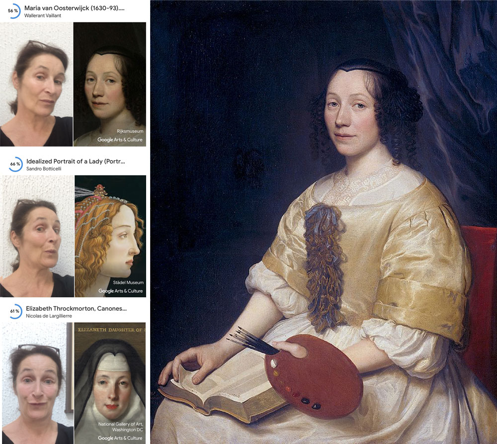 Pour mes selfies, le portrait qui revient le plus souvent est celui d’une peintre Maria van Oosterwijck 1671 (moi en plus jeune, ? !), ça me convient !!!! (merci google pour Boticcelli !!!, haha)