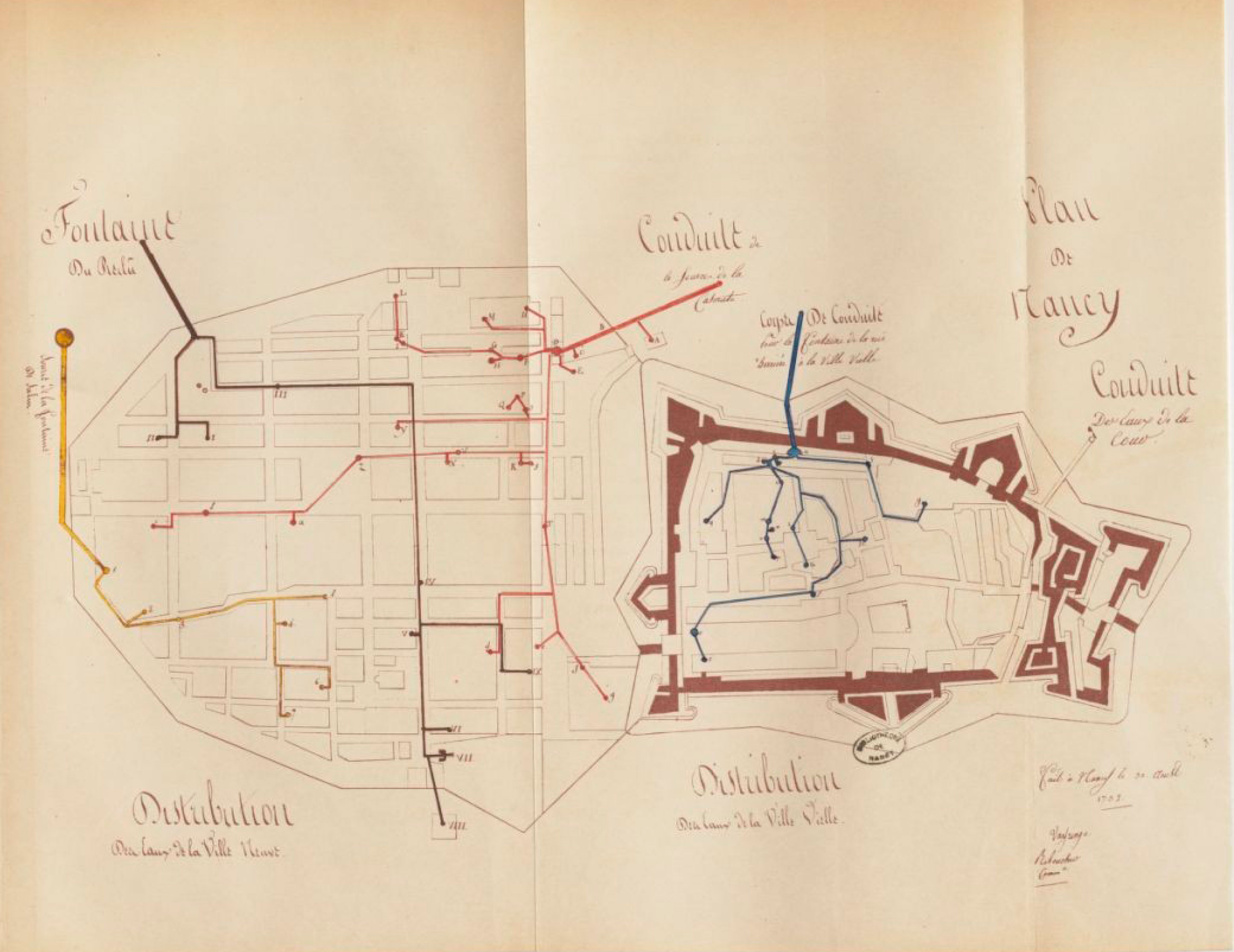 La source se situait probablement sur le domaine* du Comte de Monbois*(2), domaine créé vers 1740 par François Thibault, officier et lieutenant de police de Stanislas.