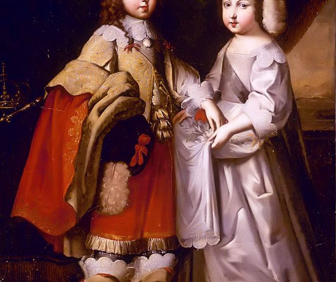 Lorsque Philippe (père de notre duchesse Elisabeth-Charlotte), nait en 1640, sa mère la régente Anne d’Autriche l’habille en fille et l’appelle « ma fille » jusqu’à l’adolescence, suivant le conseil de Mazarin qui craint de le voir se dresser en rival de son frère aîné, … le futur roi Louis XIV.