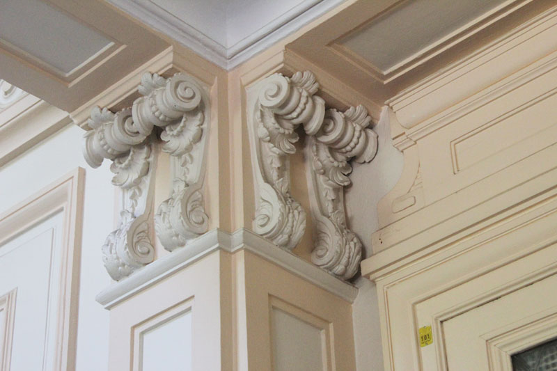Bâtiment en biais (voir plan), sa façade comportant un fronton triangulaire a été reconstruite pour être placée dans l’alignement de la rue.