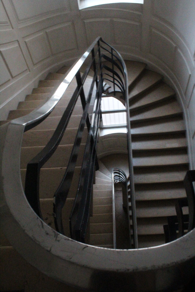 On ne s’attend pas à trouver une rampe de Jean Prouvé dans un immeuble du XVIIIe siècle, et pourtant le designer Nancéien a revisité le XVIIIe siècle de sa ville en habillant d’acier l’escalier d’un immeuble d’Emmanuel Héré à quelques pas de la place Stanislas, et c’est carrément stylé, !