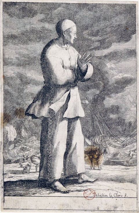 Au XVIIe et XVIIIe siècle, les estampes, largement diffusées, faisaient partie de l’imagerie populaire. Le costume de ce galérien de cette gravure de Sébastien Leclerc (sujet audacieux pour l’époque), aura peut-être inspiré celui du personnage romantique de Pierrot Français ?