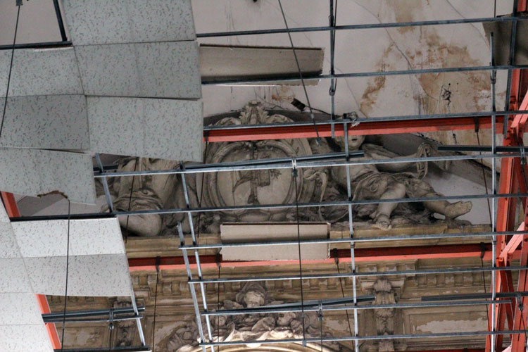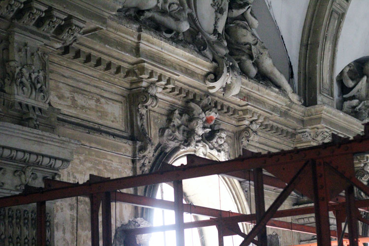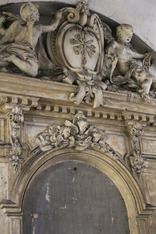 Aujourd’hui complètement déserté, ce bâtiment surprenant dont les hauteurs sont constellées d’angelots rondouillards menace tout simplement de s’effondrer !