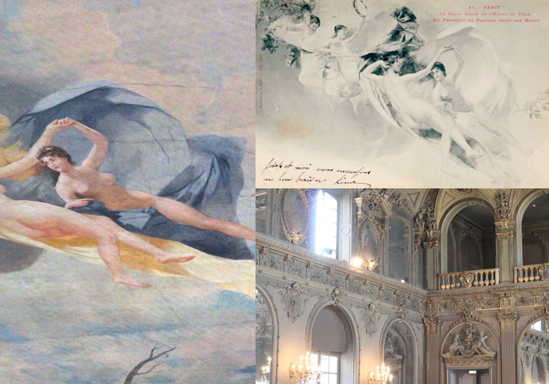 Imaginez la surprise de ces personnages distingués, lorsqu’ils reconnaissent, parmi les jolies nymphes du plafond, la fille d’un notable très en vu de Nancy, représentée entièrement nue par le peintre, qui est aussi… son amant !