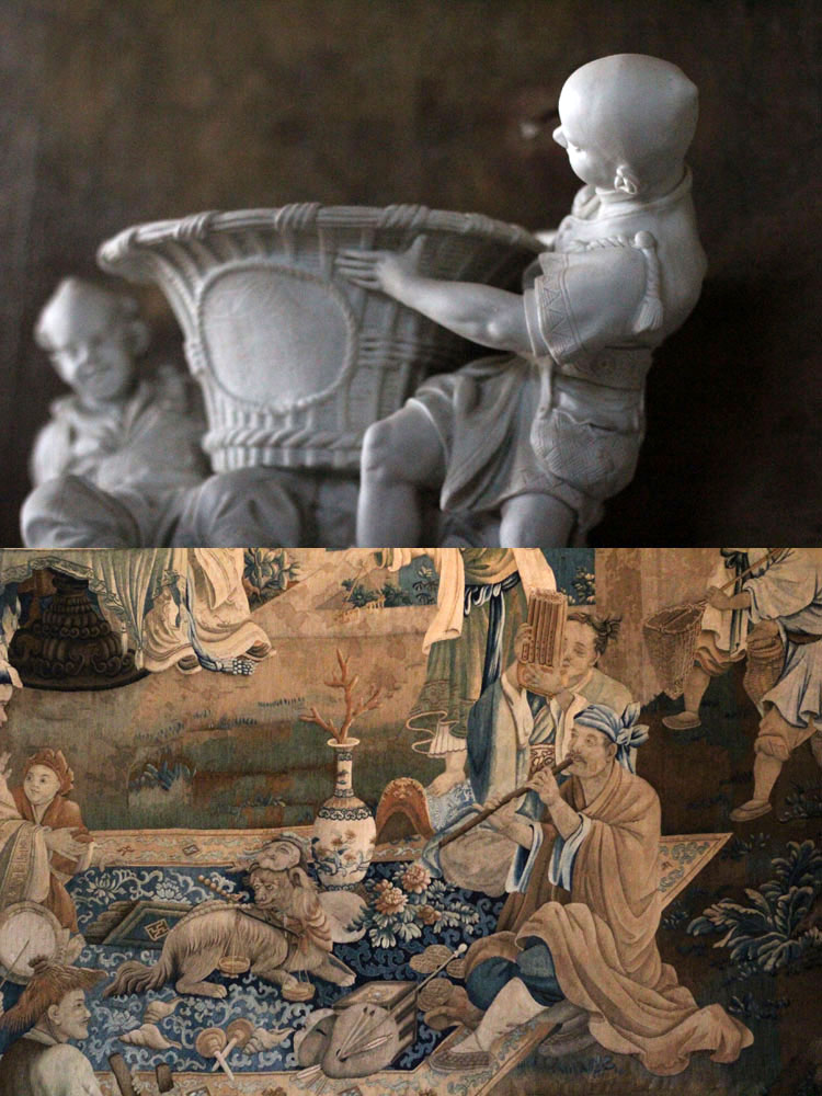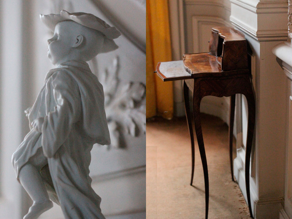 Photos : Terre cuite Diane chasseresse d’Antoine Coysevox (pour le château de Marly)Tapisserie/Cabinet d’ébène de Pierre Gole, Chinoiseries, Bonheur du jour, tapis d’Aubusson etc…©PFDebert