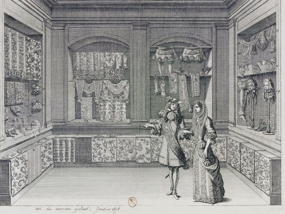 Jean Bérain, premier décorateur du Roi Louis XIV, (né à St Mihiel) dessine pour Le Mercure Galant, magazine créé en 1674 traitant de poésies, musique, actualités et dont les numéraux spéciaux dits “extraordinaires” comportent des planches de mode !