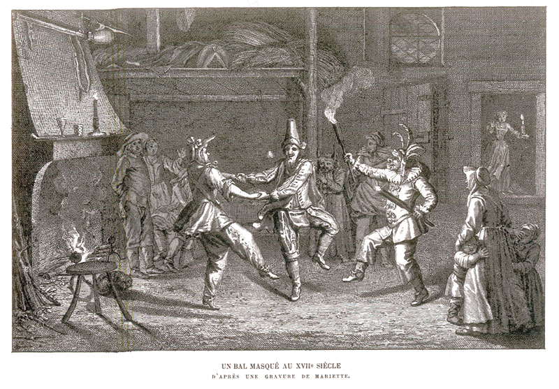 Gravures de confettis du XVII et d’autres gravure de mascarades sources © Histoires des jeux par H-R Lallemand