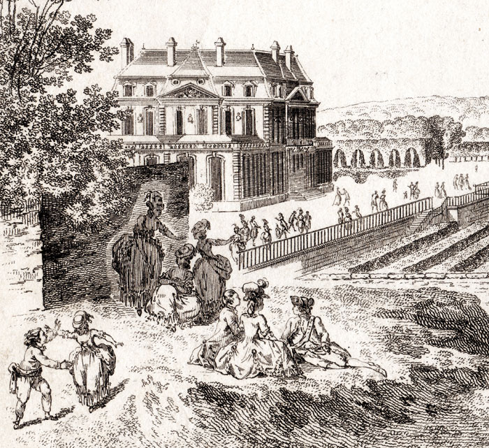 Très jolie gravure du château de Bellevue (1770), Meudon, Chinée aux Liserons Blancs, the bouquiniste de Nancy !