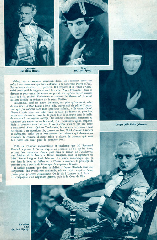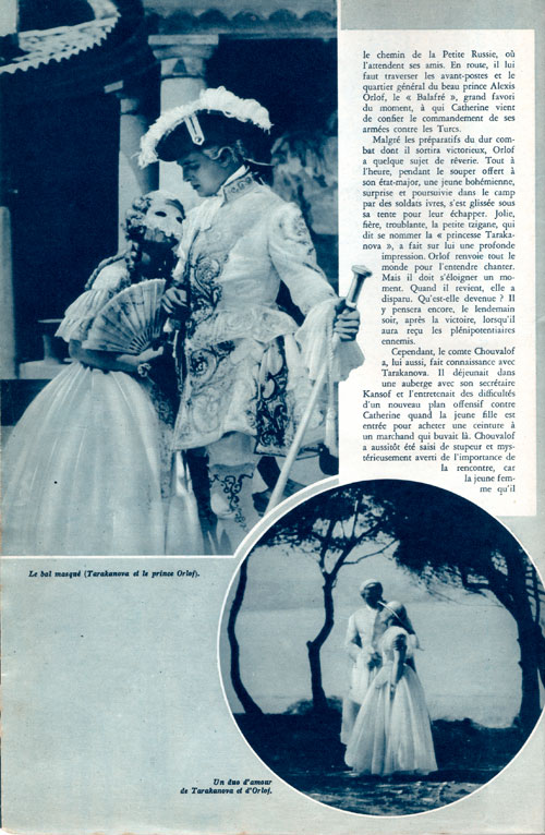 Dernier film muet réalisé en France en 1930 par Raymond Bernard, avec des acteurs français et allemands (+ une courte apparition d’Antonin Artaud) et dont voici le synopsis : En 1774, une tragique histoire d’amour sur fond de complot pour renverser le pouvoir de la grande Catherine de Russie, un scénario inspiré d’une histoire vraie mais surtout d’une romance des années 30, bref le XVIIIe siècle revu et corrigé dans le goût des années folles !