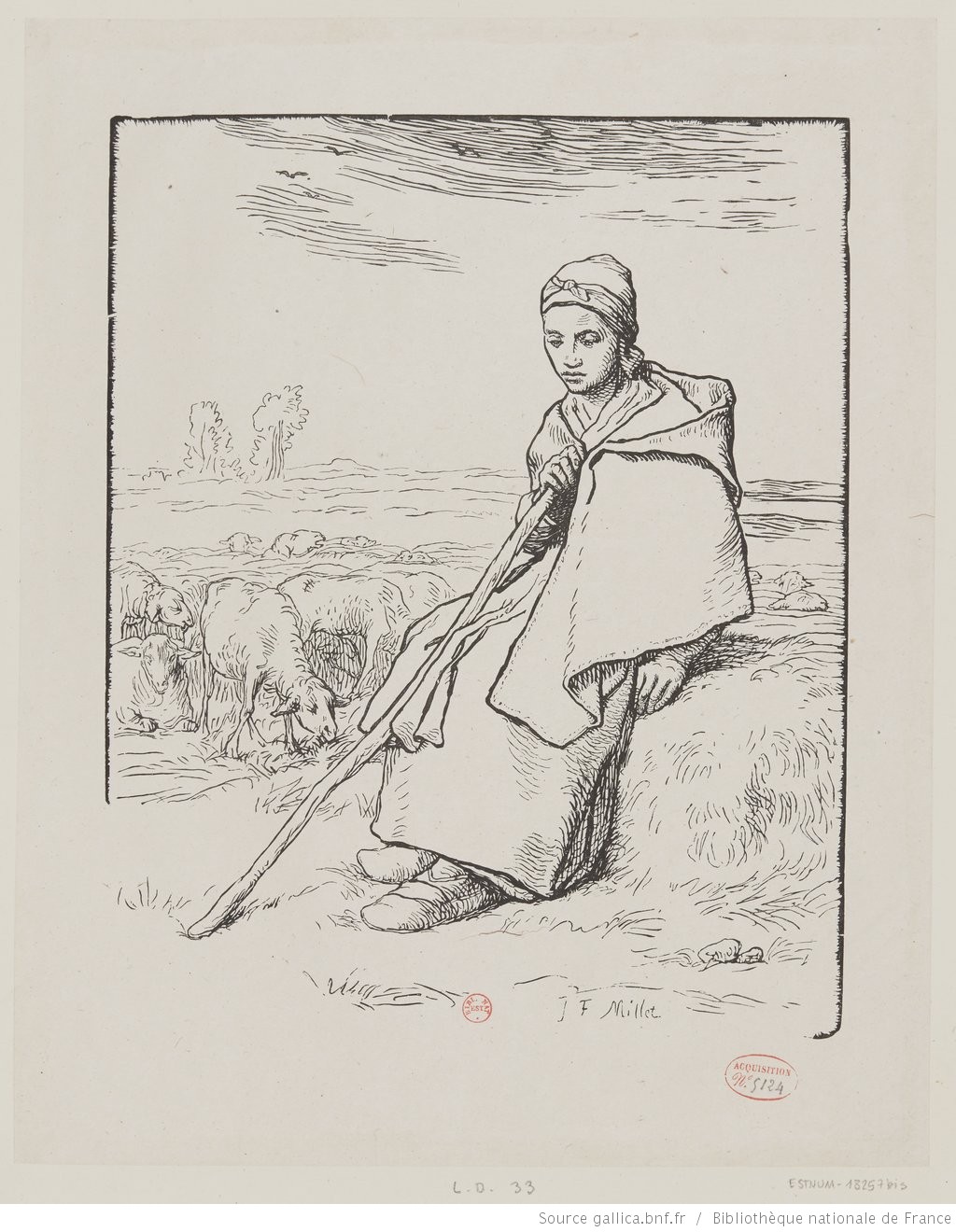 La grande bergère assise JF Millet, gravé par son frère Pierre Millet ©gallica