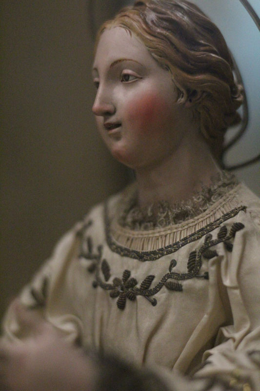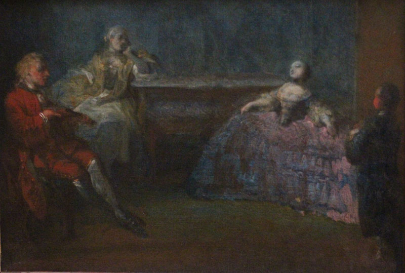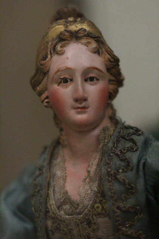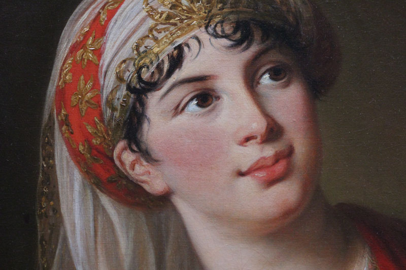 Circassienne et Vierge de Nativité, personnages en cire de crèche vénitienne du XVIIIe siècle (détails), maquette de l’hôtel de ville de Rouen 1758 (détail), La gardeuse d’oie par Fragonard, La leçon de danse par Gabriel de Saint Aubin, Giuseppinna Grappini dans le rôle de Zaïre par Elisabeth Vigée-Lebrun (détail), Raisin blanc par Léopold Boilly