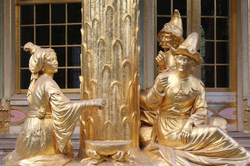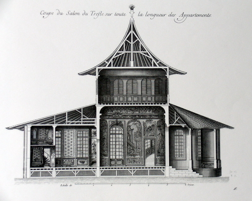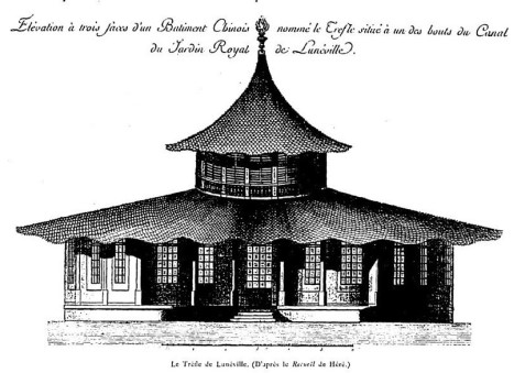 Dans le parc du château de Sans Souci à Postdam (Berlin), se trouve l’exacte réplique du Trèfle, pavillon appelé aussi “fabrique”,  première chinoiserie élevée en Europe en 1737 dans le parc du château de Lunéville par le roy Stanislas !