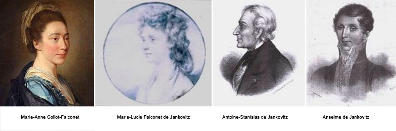En 1866, Marie-Lucie Falconet, Baronne de Jankovitz de Jeszenisce lègue à la ville de Nancy : – une liasse de papiers provenant de son grand-père le célèbre sculpteur Etienne-Maurice Falconet, – divers portraits peints par son père Pierre-Étienne Falconet et plusieurs bustes en marbre de sa mère, la célèbre sculptrice Marie-Anne Collot.