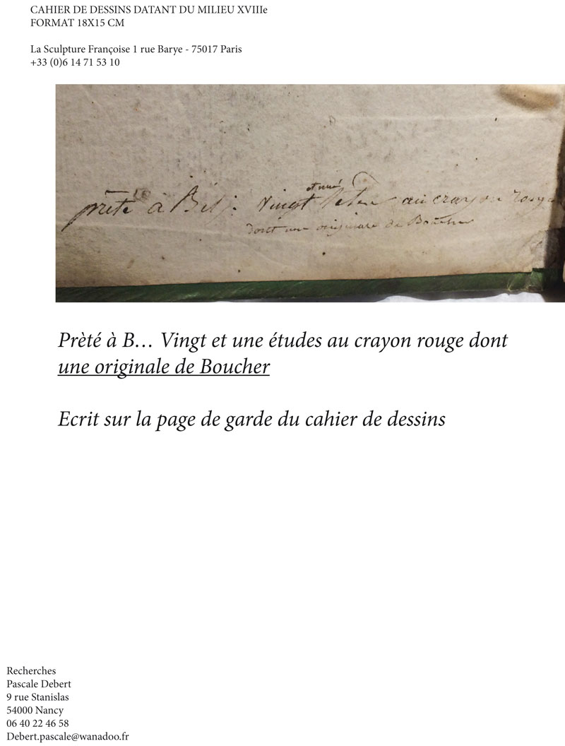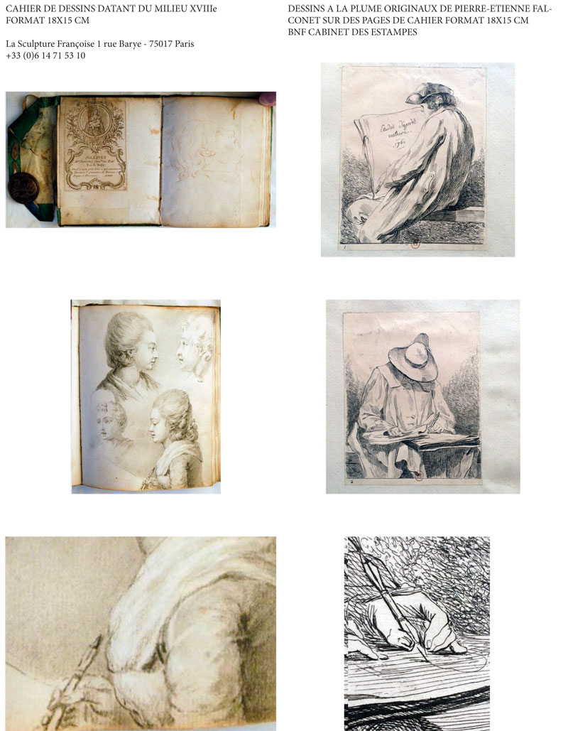 Une série d’indices nous permet de penser qu’un cahier de dessins d’étude de Pierre-Etienne Falconet serait ressorti au grand jour après 150 ans d’oubli.