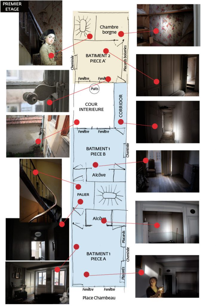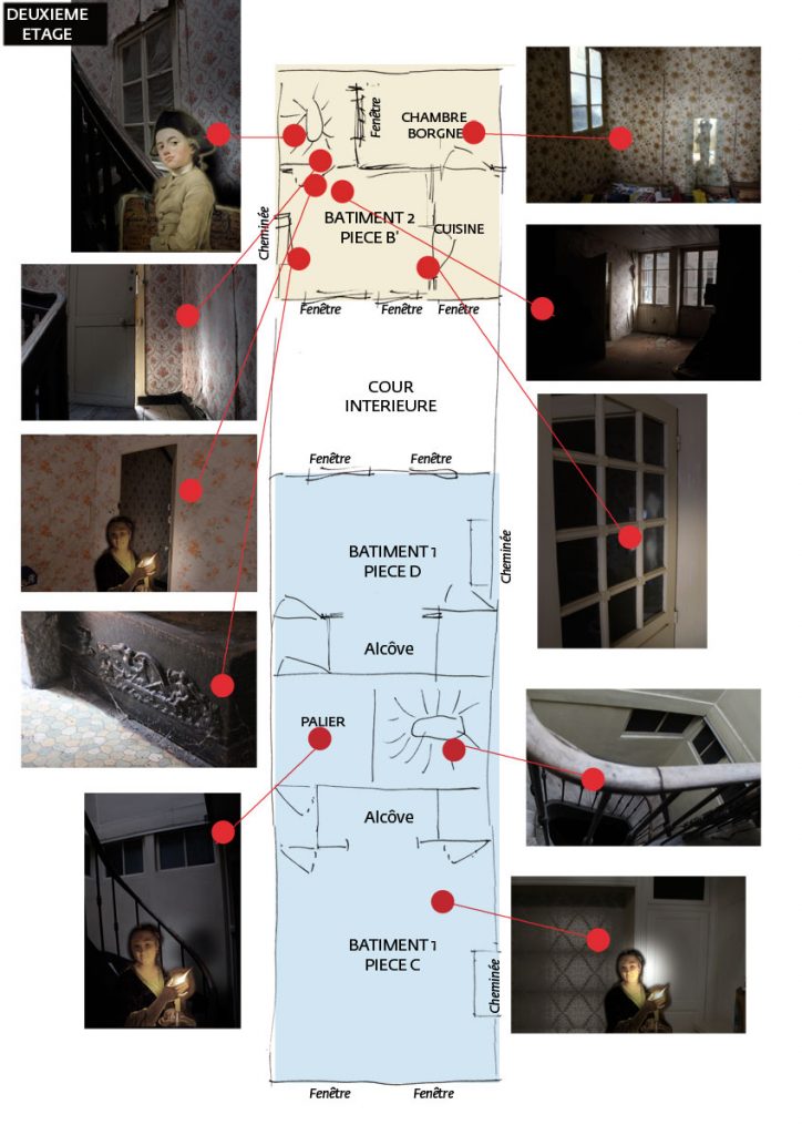 Ce deuxième bâtiment comprend au premier étage une très belle pièce avec de très nombreux placards en boiseries et une chambre borgne, probablement celle où se réfugie Didier Diderot, père de famille, après le décès de sa femme Angélique, et au deuxième étage une pièce avec une cheminée ouvragée et une autre chambre borgne elle aussi mais avec une fenêtre donnant sur l’escalier (chambre d’Hélène, domestique ?).