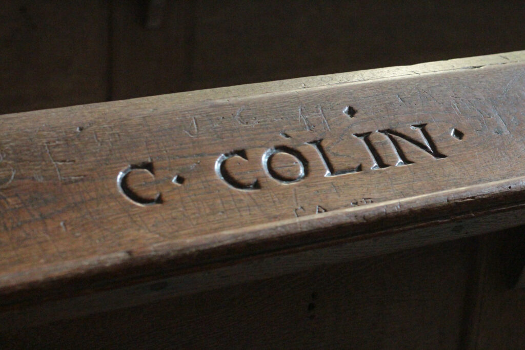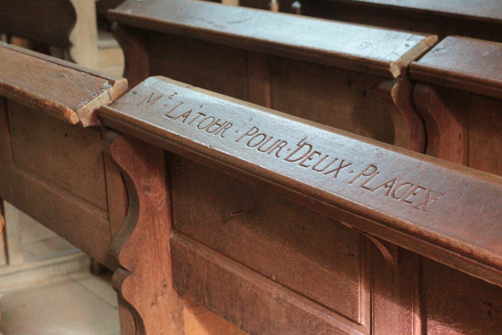 Les noms gravés dans les bancs de chêne expriment les caractères très affirmés des notables et bourgeois de la petite cité.