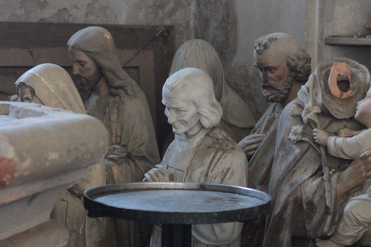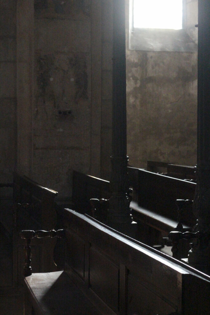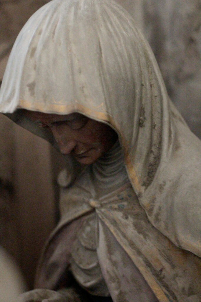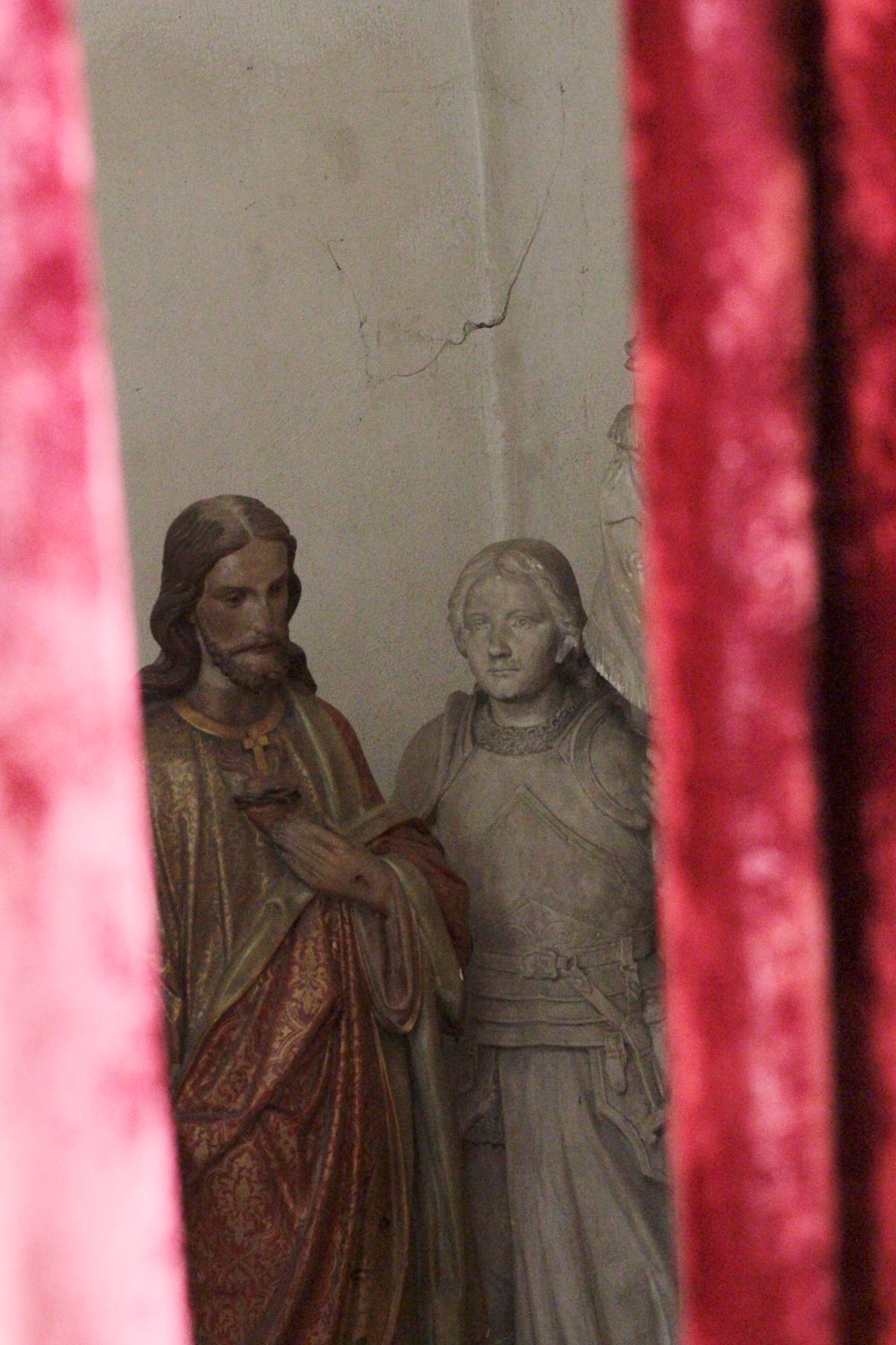 Dans les chapelles latérales, derrière les portes et les rideaux, plusieurs saints de pierre semblent prier à l’unisson pour le salut de notre âme.