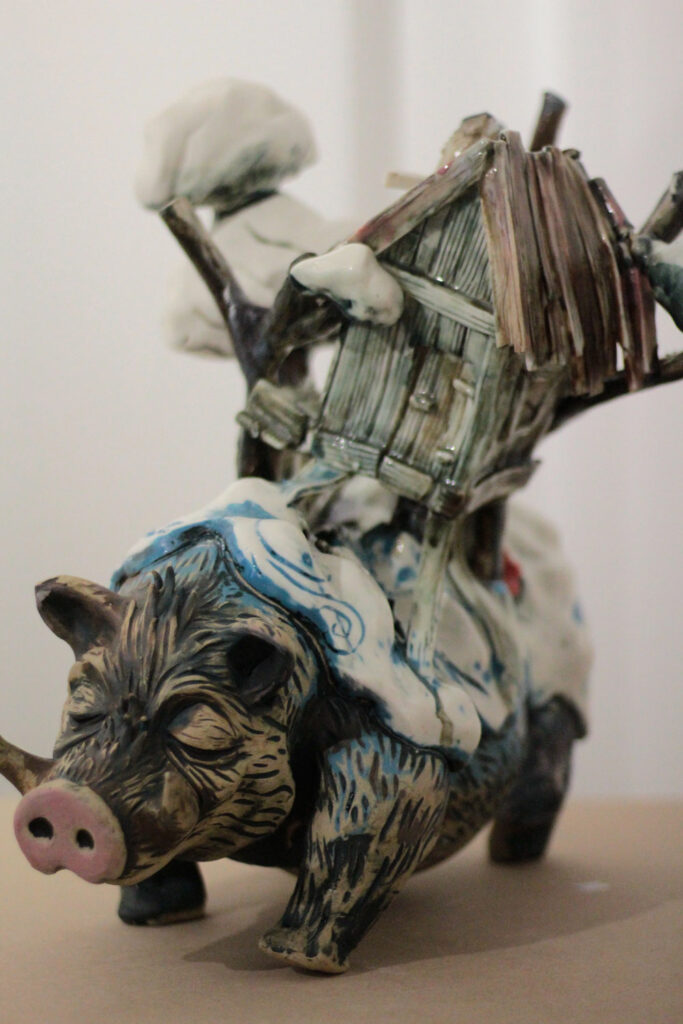 Une vingtaine d’artistes céramistes exposent leurs œuvres sur les trois étages de la petite maison … aux volets bleus, cela va s’en dire.