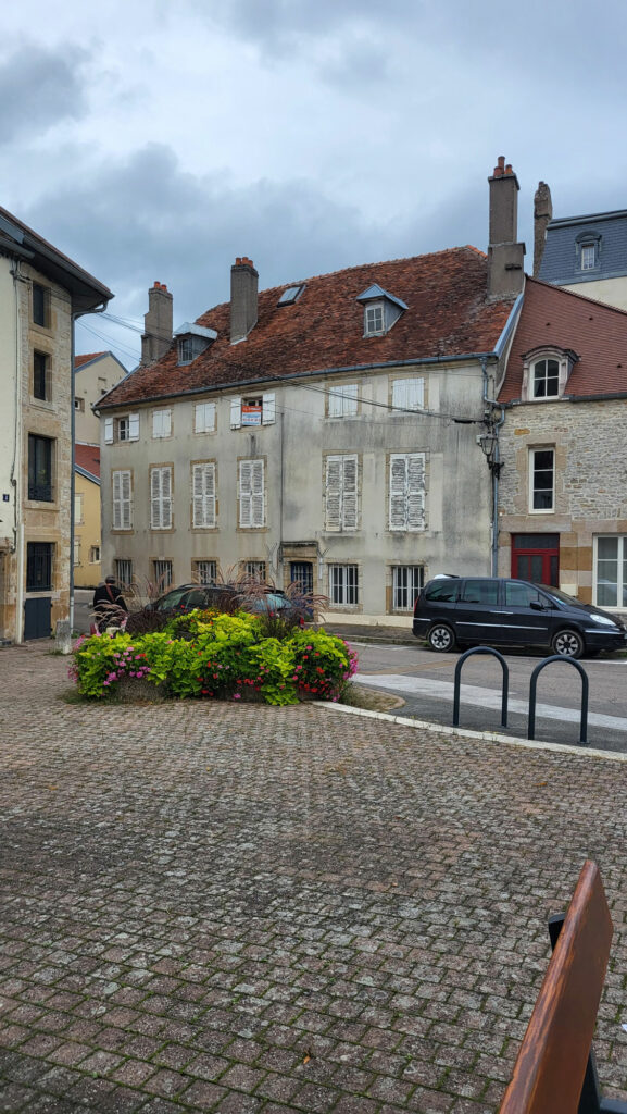 Lors de mes nombreuses visites d’immeubles anciens à Langres en Haute-Marne, je fus étonnée de découvrir sur l’un des murs d’une maison du XVIIe siècle, une fresque des années 1980 représentant Emilie de Breteüil, marquise du Châtelet. On m’assura que cette fresque était un hommage à la marquise qui avait séjourné dans cet hôtel.